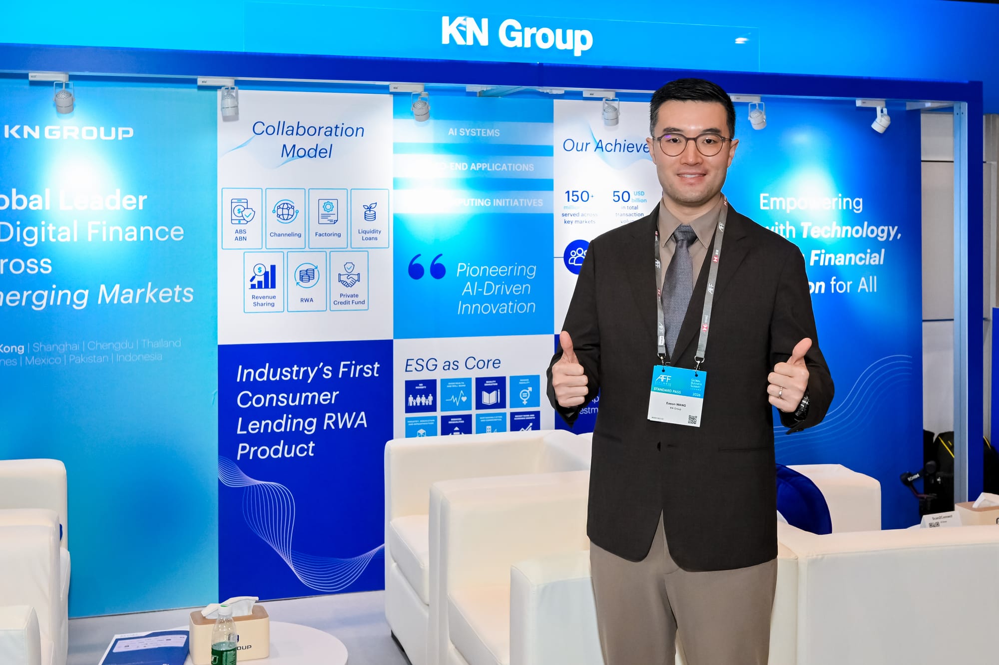 The theme of this year’s forum, "Co-creating New Horizons amid an Evolving Landscape," emphasizes investment insights, multilateral cooperation, innovation, and sustainability. KN Group is actively engaging with international financial institutions and potential partners to delve into essential topics like cross-border collaboration, technology empowerment, and ecosystem development. Our booth also illustrates our commitment to Environmental, Social, and Governance (ESG) practices, showcasing our efforts to promote financial equality and support the sustainable growth of SMEs through innovative solutions.